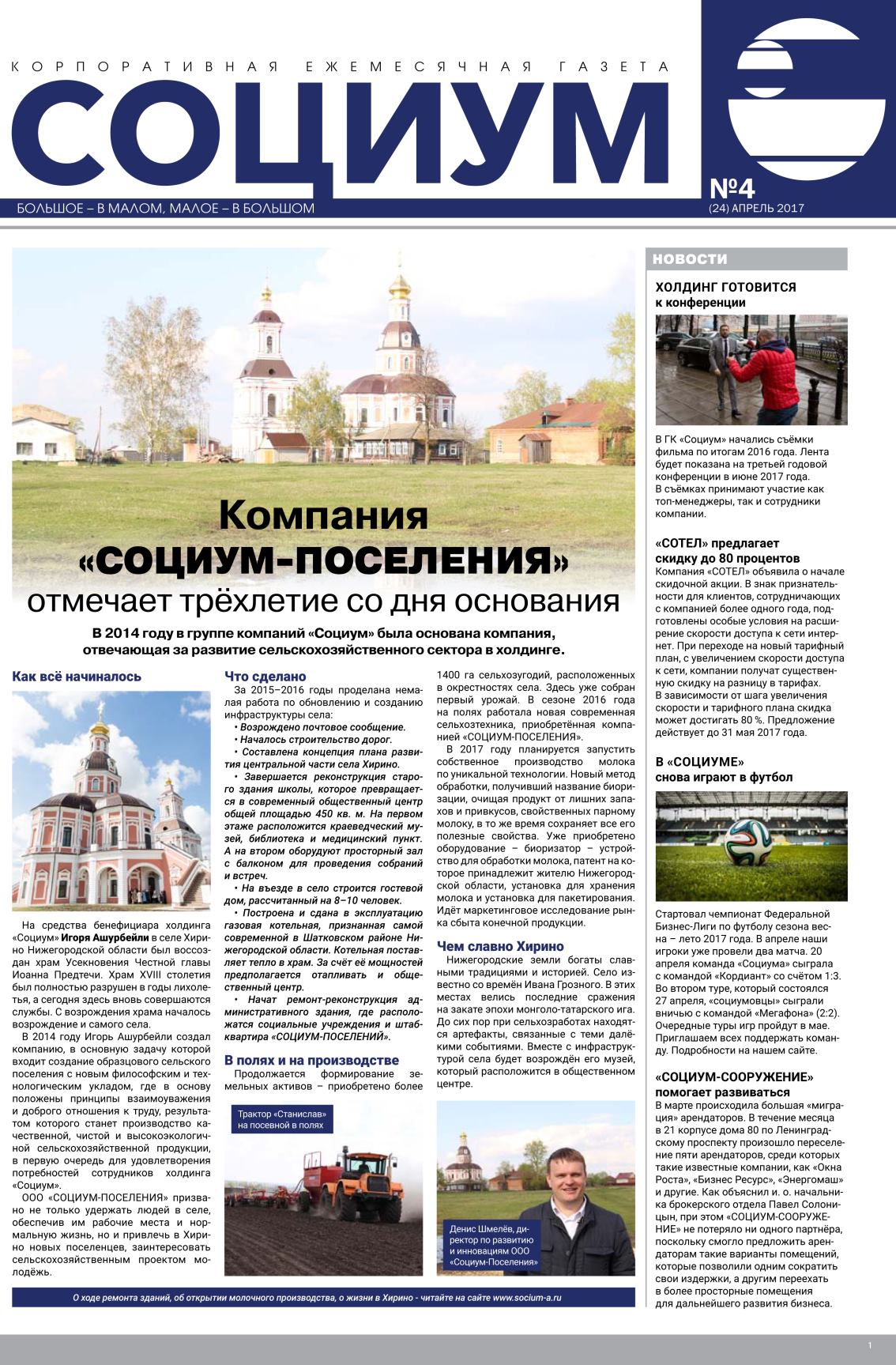 Корпоративная газета «Социум». №4 (24) апрель 2017 год - page 1