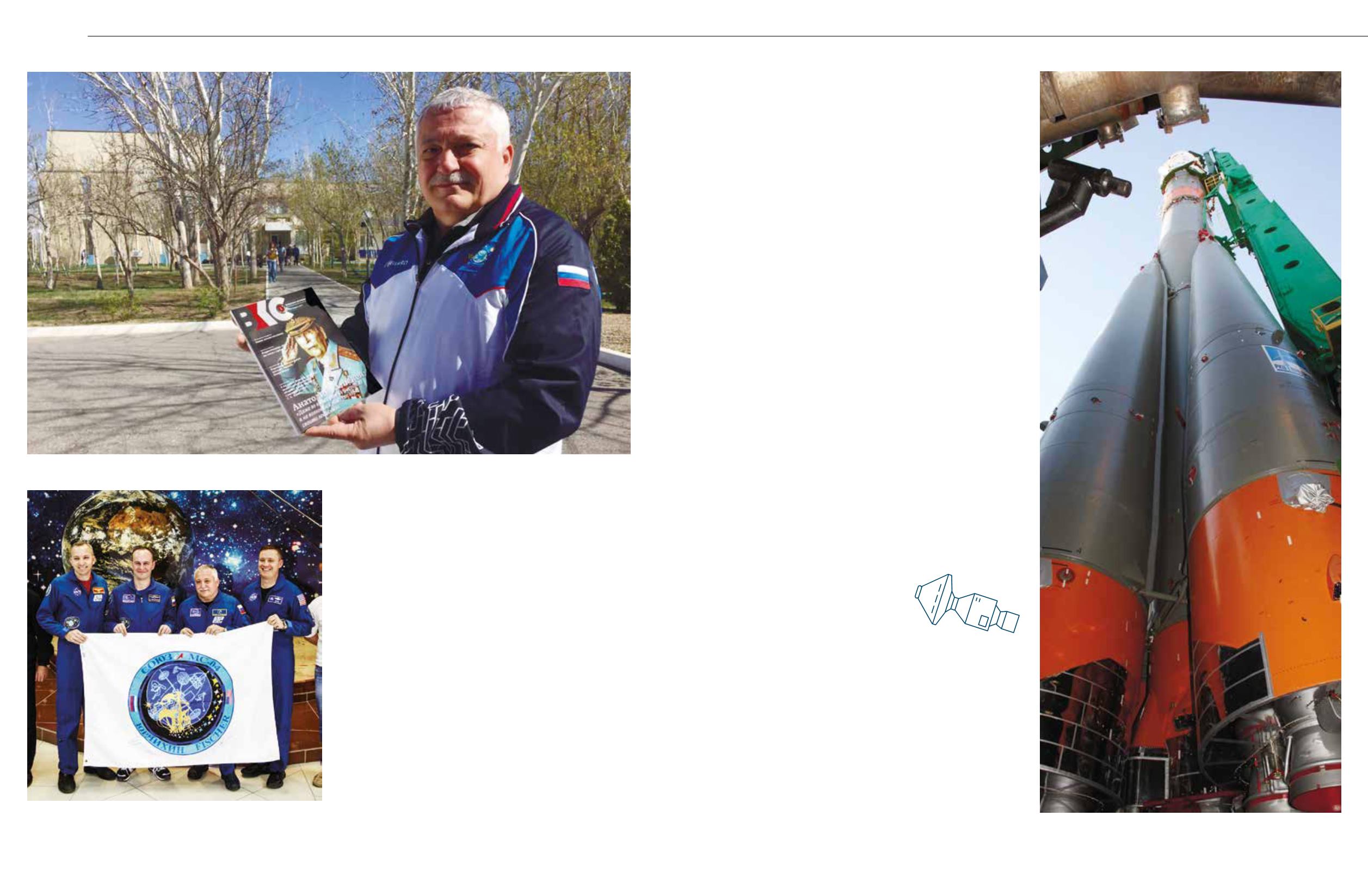 Командир экипажа корабля «Союз МС-04» Федор Юрчихин с журналом «ВКС» перед стартом на Байконуре